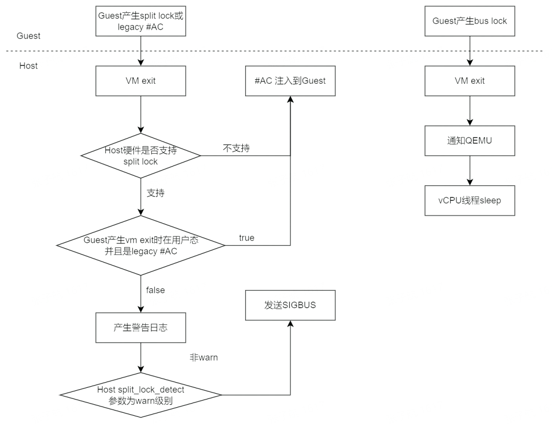 Guest 内部产生 split lock 操作时,由于是#AC exception,会 VM exit 出来。