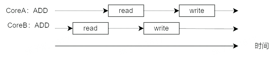 为什么会出现这个问题呢?就是因为 ADD 指令不是原子操作,会产生两次内存操作。