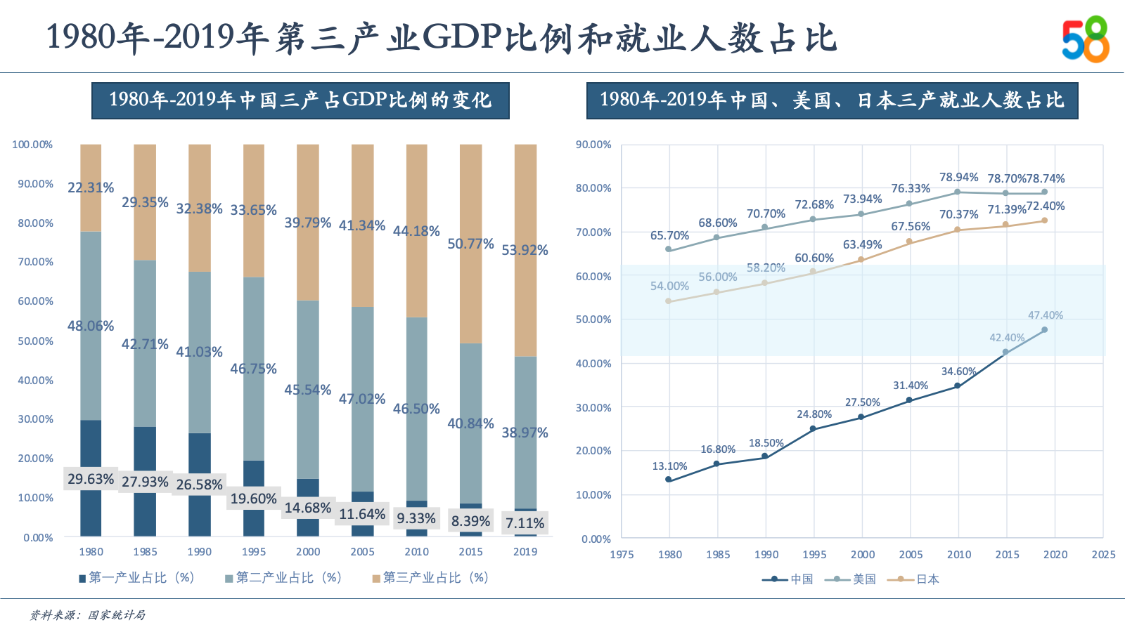 第三产业比例:我国就业人数比例将趋近于美、日,三产就业人数有望超过60%,需求和供给双轮驱动三产