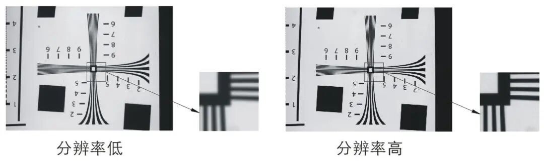 6、分辨率分辨率是指光学系统可以测到的被测物体上的最小可分辨特征尺寸。镜头能分辨物体的细节越小,镜头的分辨率就越高。通常用像面处每毫米能够分辨的黑白相间的条纹对数(lp/mm)描述。在实际应用中,建议镜头的分辨率不低于相机的分辨率。