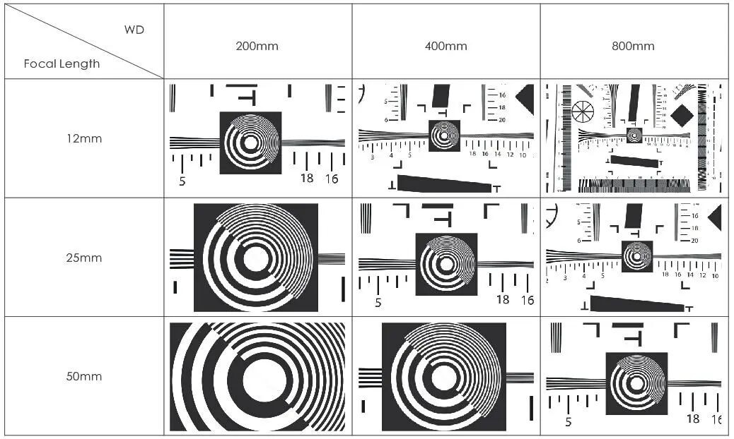 相同的工作距离下,焦距越短,视场角越大,视野也就越大;相同的焦距下,视场角一定,工作距离越远,视野越大。