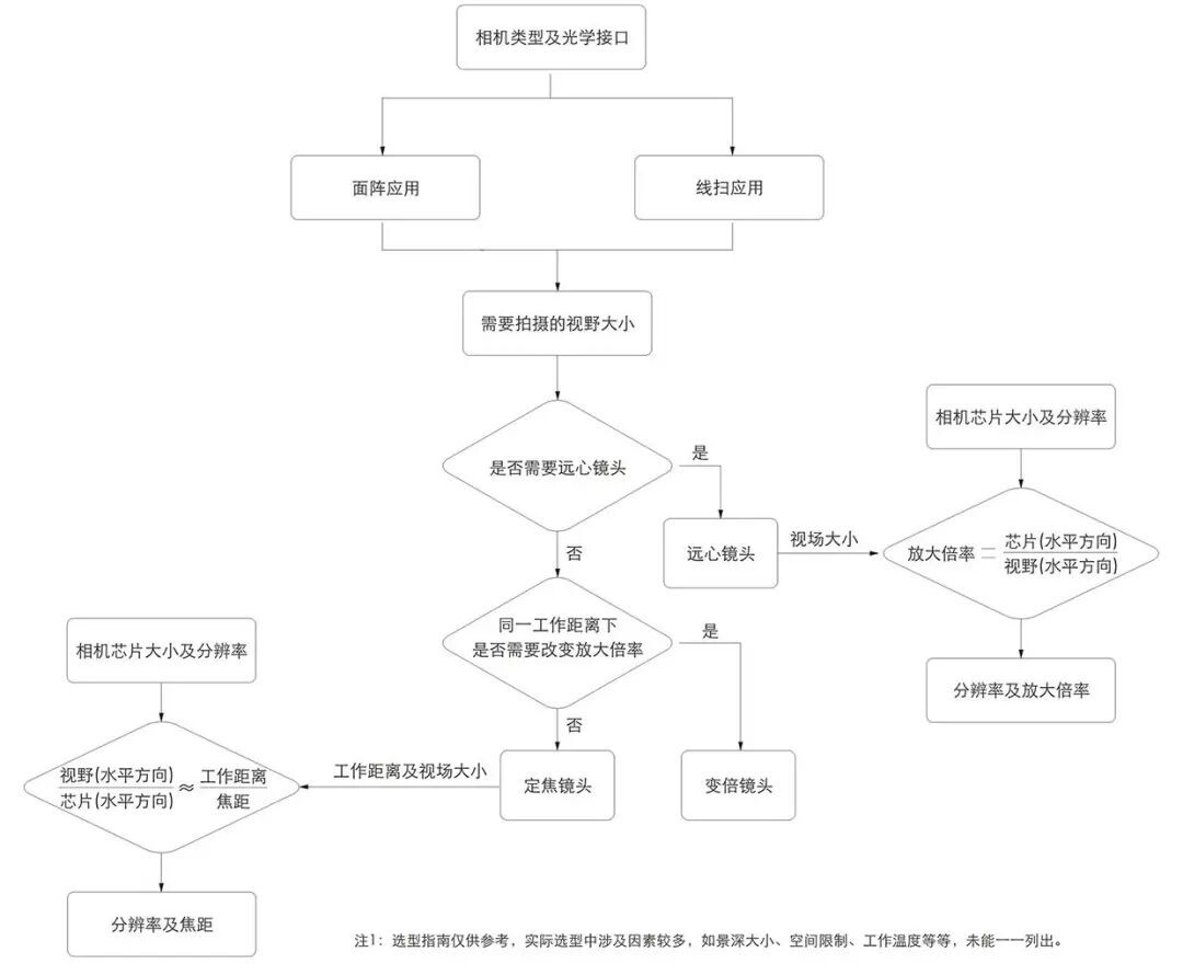 1、选型思路在机器视觉系统中,镜头的主要作用是将工件成像至相机传感器芯片上,因此镜头的选型将直接影响到机器视觉系统的整体性能。一般可以通过以下方式合理地选择镜头: