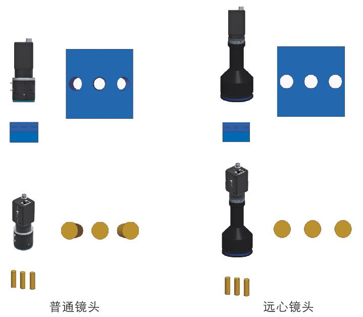 双侧远心镜头常规的表面缺陷检测、有无判断等对系统精度要求不高时,可以选用普通镜头。对于精密测量的应用需求则考虑选择远心镜头,因为普通镜头成像时,由于不同工作距离造成放大倍率不一致而造成视差,即产生近大远小的效果,从而影响测量精度。远心镜头能确保检测目标在一定范围内放大倍率一致,克服视差,从而提高测量精度。
