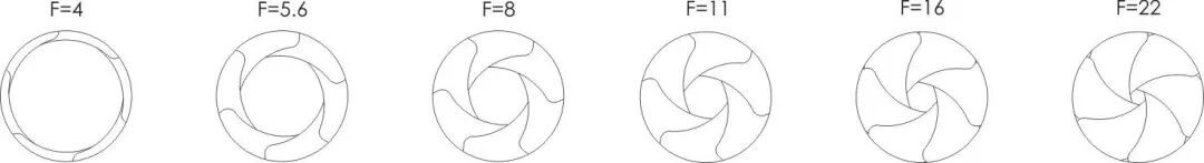f/#值越小,光圈越大。一般f/#值是以√2倍递增,因此光圈常用的计数为F1.4,F2.0,F2.8,F4.0……在同一单位时间内上一级的通光面积是下一级的两倍,例如光圈从f/8调整到f/5.6,通光面积便增加一倍。