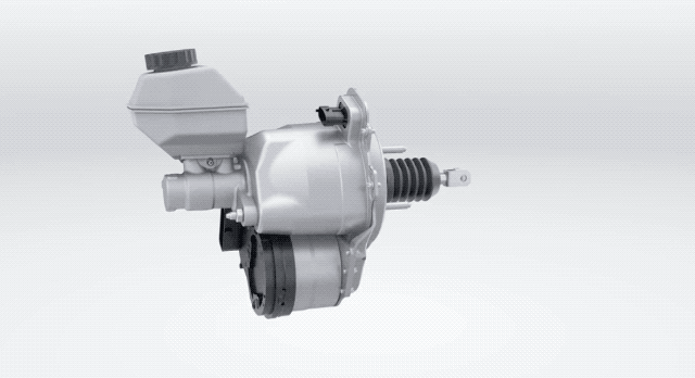 简单来说,特斯拉所采用的iBooster刹车系统工作流程,是驾驶员踩下刹车,产生的位移电位信息传输至控制模块,控制器计算出所需要的电机扭矩,提供所需伺服制动力;伺服制动力与踩踏板产生推杆力一起作用,在制动主缸内共同转化为制动器轮缸液压力来实现制动。