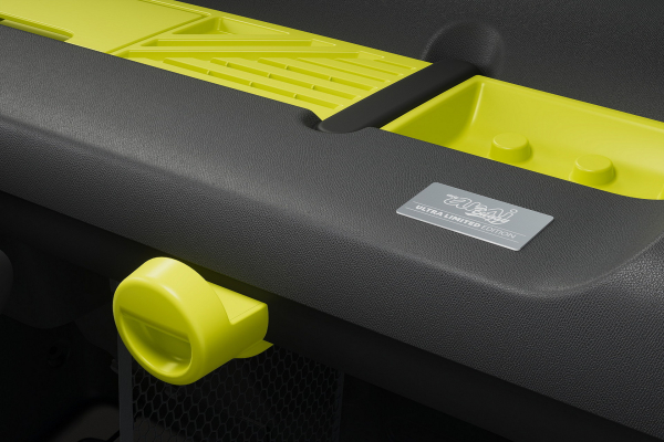 该限量版车型与普通版Ami最大的不同在于其偏向越野的造型。该车顶部采用了可以回滚的帆布车顶,起到了类似可开启天窗的效果。该车的另一大特点便是并未配备普通车门,而是采用了金属管门的设计,这都增强了该车的露天体验。不过这对该车并不是一件坏事,因为该车并没有配备车载空调。限量版车型采用了卡其色车身涂装,保险杠和轮拱上加入了黑色塑料包边。作为限量版车型,该车在车辆中控台上方还加入了专属的铭牌,以彰显其限量版的身份。