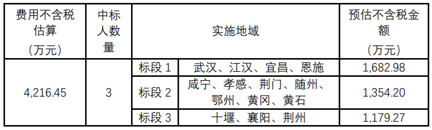 第一名:中讯邮电咨询设计院有限公司;无线网设计费取费系数总额:1.42%、无线网查勘费:国家标准4折、移动网配套设计费取费系数总额:1.42%、移动网配套铁塔设计(元):20,830.00元、本地传输网设计费取费系数总额:1.45%、本地传输网查勘费:国家标准4折、局房电源设计费取费系数总额:1.98%。质量:符合招标文件要求。服务周期:符合招标文件要求。服务区域:武汉、江汉、宜昌、恩施,份额:100%;