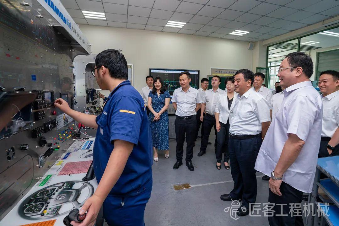 在徐工技师学院,杨志贵一行参观了与国际标准接轨的现代化国际实训中心、李攀攀劳模创新工作室、学生党建园地、图书馆、物联网专用教室等场所,详细了解学院校企合作、职工培训、招生就业、教育教学等特色做法。