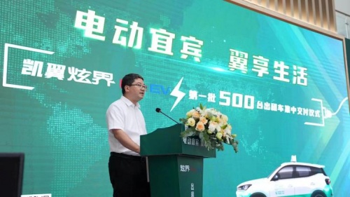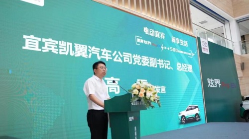 ( 宜宾凯翼汽车总经理高雷在仪式上发言)
