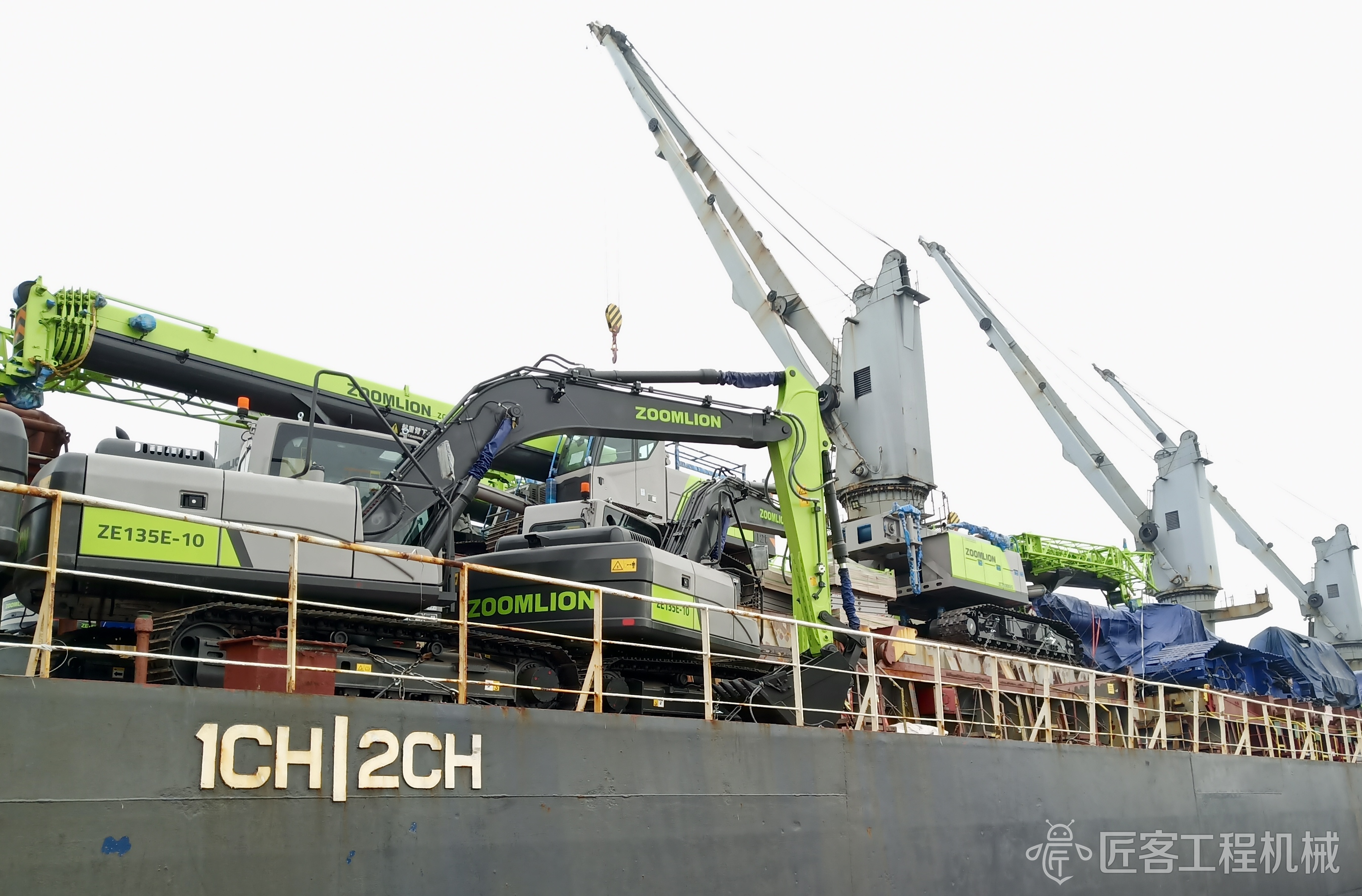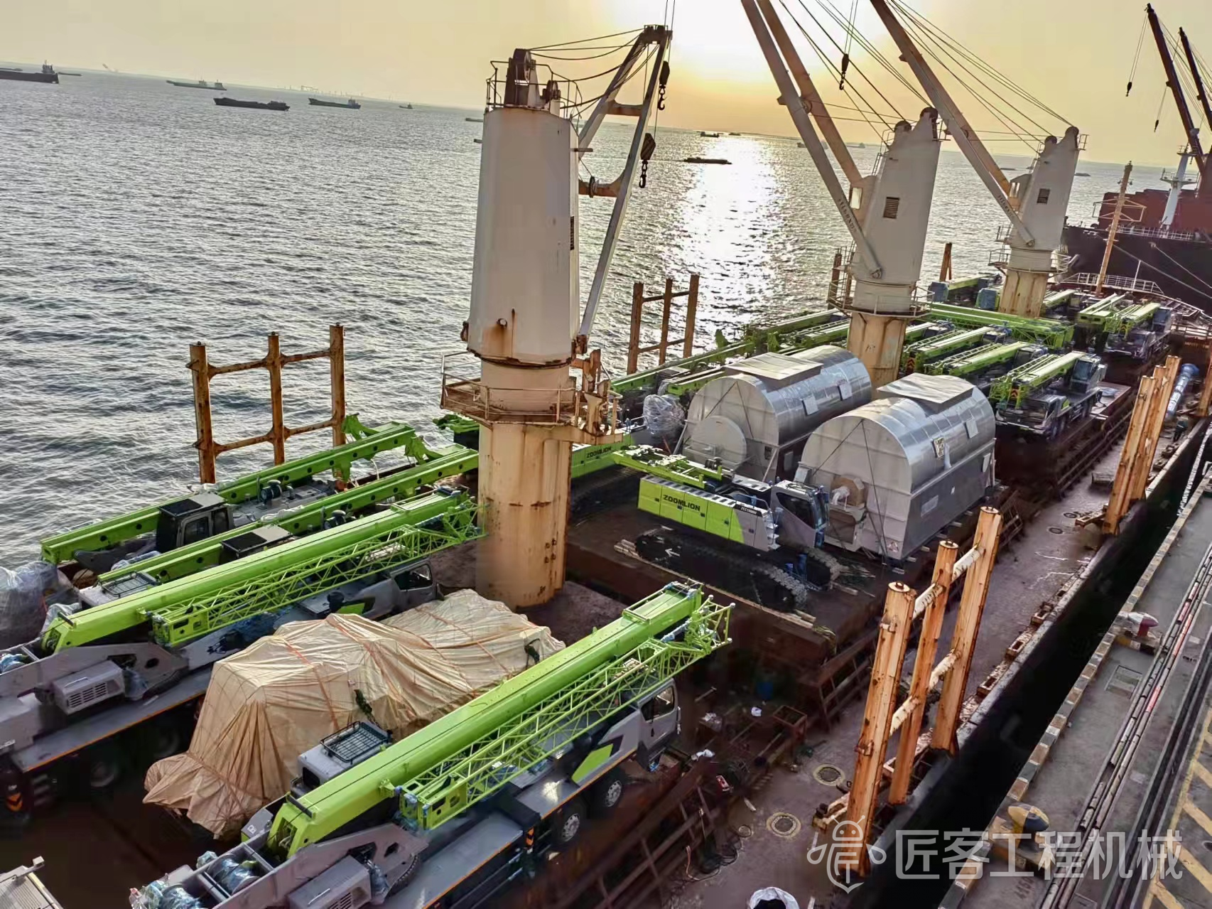 △已装运上船的中联重科土方机械、起重机械等各类设备