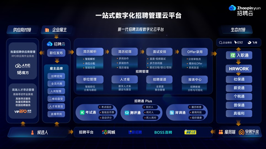“招聘云”现已与社保通、薪资通等产品模块一起在HRWORK人事通平台内打通联接,企业客户可按需选购,满足差异化产品需求。