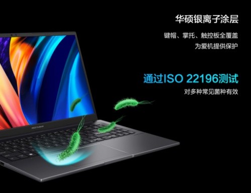 华硕无双此次有一些创新性体验支持。华硕无双的键帽、掌托、触控板进行了银离子抗菌涂层全覆盖设计,经过ISO 22196测试,有效抑制多种常见菌种生长,达到了99%的抑菌率,是非常实用的创意设计。