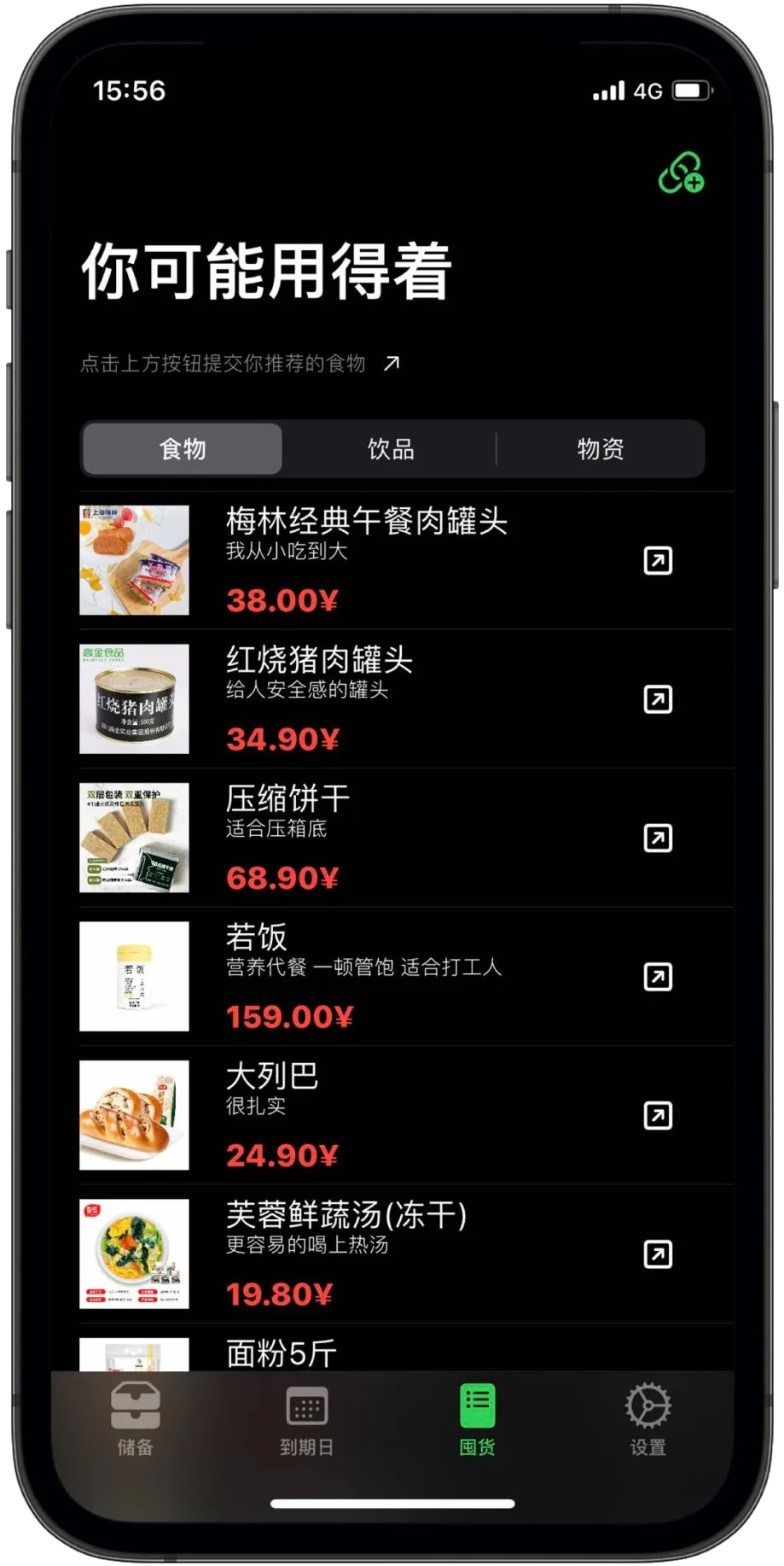 除了以上这些功能,囤饭饭还会提醒你哪些食物马上就要到期了,以及推荐一些易于保存的罐头、压缩饼干给你。