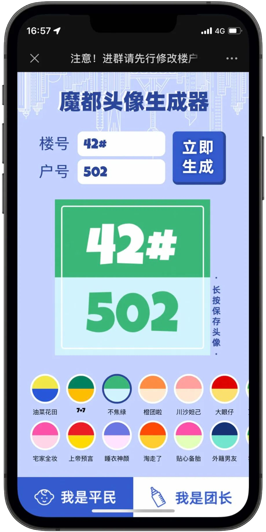如果你是生活在魔都的普通平民,就可以直接在网页上输入自己的楼号和户号,就可以生成一个平民头像了。