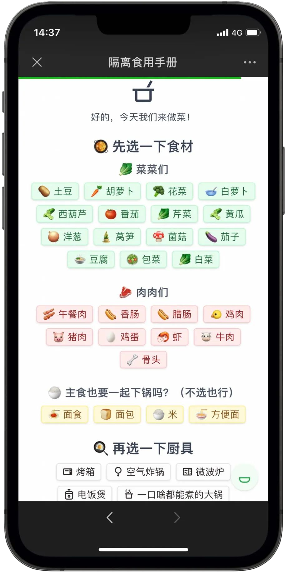 这份《 隔离食用手册 》就会自动帮你匹配出一份长长的菜谱~