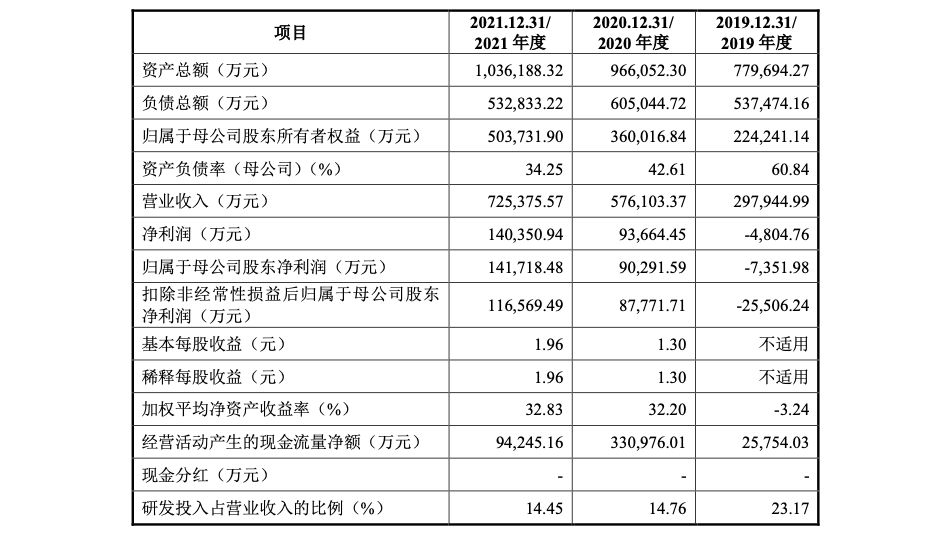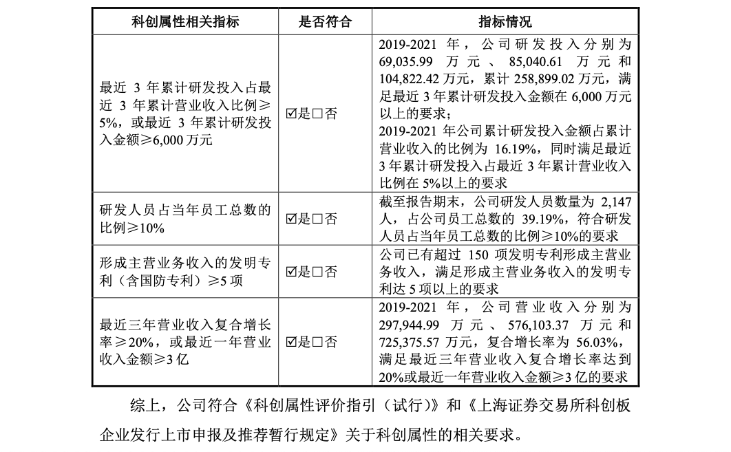 招股书显示,2019-2021年,联影医疗研发投入分别为6.90亿、8.50亿、和10.48亿元,累计25.89亿元,2019-2021年公司累计研发投入金额占累计营业收入的比例为16.19%。均满足科创板上市相关指标要求。