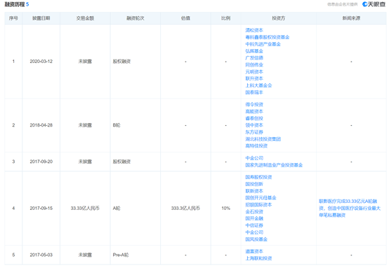 天眼查App信息显示,联影医疗于2017年5月获得首轮融资,投资方为上海联和投资、道富资本。