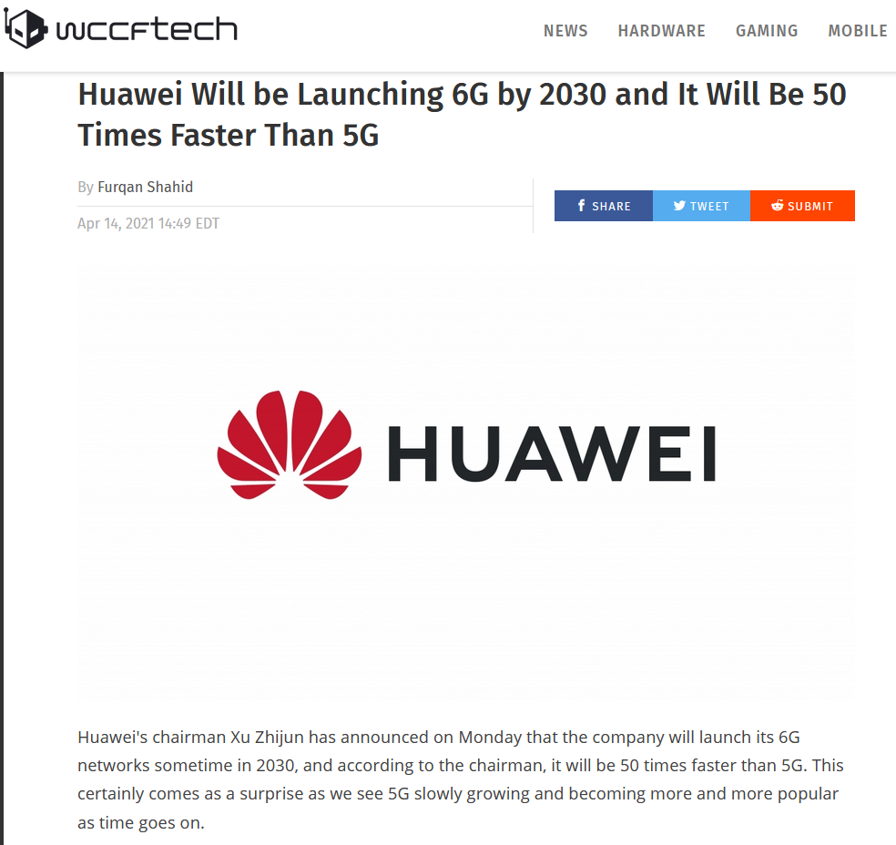 据WCCFTECH报道,华为董事长徐志军日前宣布,该公司将在2030年推出其6G网络。据介绍,6G网络的速度将比5G快50倍。Cs3esmc