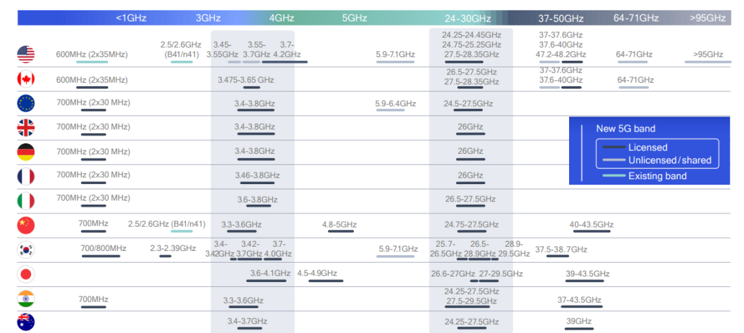 全球5G频谱划分/计划一览
