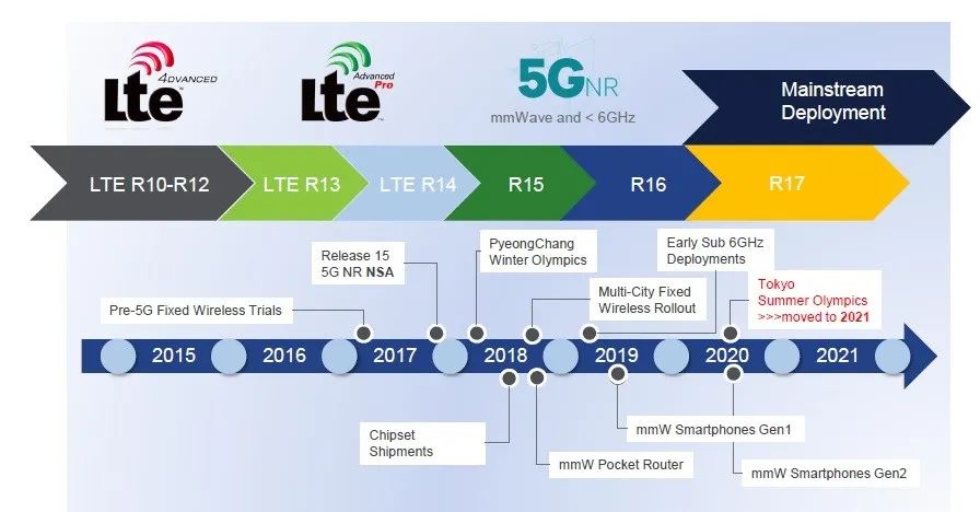 下图是5G技术演进的时间轴。