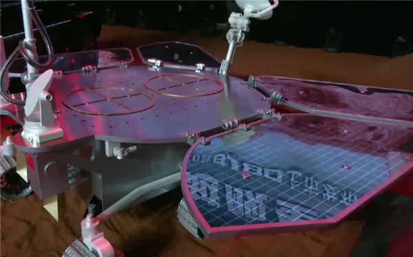 和火星车一起亮相的还有1∶1着陆平台,我国首次火星探测任务中它将搭载火星车着陆到火星地表,迈出中国火星探测的第一步。
