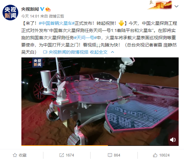 据了解,此次火星探测是我国行星探测阶段的首次任务,也是我国深空探测领域全新的里程碑,将一次实现“环绕、着陆、巡视”3个目标,这是其他国家第一次实施火星探测从未有过的,面临的挑战也是前所未有。