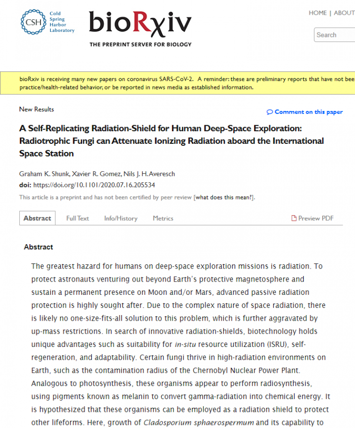 一项尚未经过同行评审的新研究于7月17日发表在预印本存储库bioRxiv上,研究了其中一个物种,Cladosporium sphaerospermum。它表明,这种真菌可以作为一种自我修复、自我复制的盾牌,保护深空中的宇航员。