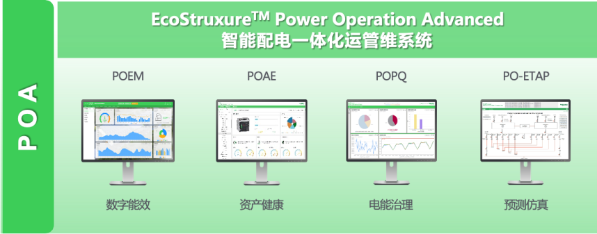 除了解决终端设备及电力监管控问题,用户也有提高配电系统安全性、资产和运维管理效率、能源使用效率、供电质量等诸多需求,配电系统该如何应对?施耐德电气Power Operation Advanced (POA)智能配电一体化运管维系统从多维价值应用和跨域业务融合的角度为配电系统提供了新思路。