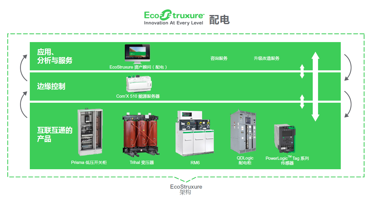 EcoStruxure资产顾问基于物联网的架构与平台,与边缘控制端的Com'X510能源服务器及Prisma低压柜、Trihal变压器、BlokSet新一代预智低压柜、PowerLogicTM Tag系列传感器等设备元器件互联互通,通过精确的数据收集、分析及反馈为运营团队提供电力可视化参考及可靠性支撑,助力雀巢托卢卡工厂降低维护及总拥有成本,最终实现更高的商业盈利: