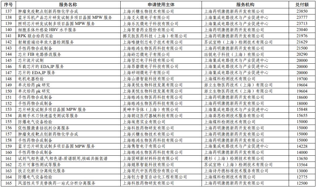 上海市 2022 年第一批科技创新券(仪器类)兑付清单
