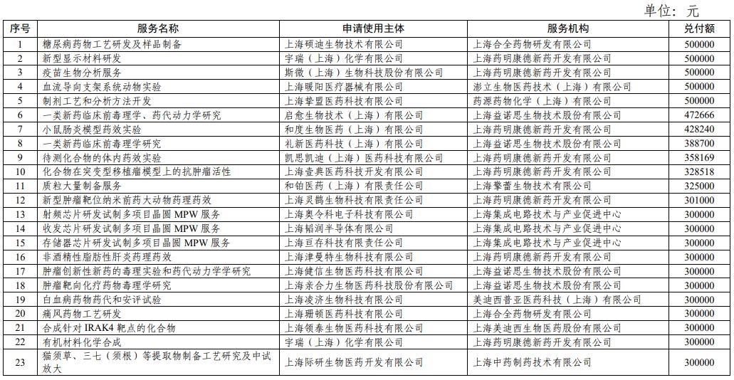 【仪表网 仪表产业】为进一步降低中小微企业和创业团队创新创业成本,激发创新活力,根据《上海市科技创新券管理办法(试行)》(沪科规〔2018〕8号)要求,经兑付受理、审核和社会公示,确定对“上海合全药物研发有限公司”等符合科技创新券兑付条件的服务机构进行兑付,经费总额19,660,495元。