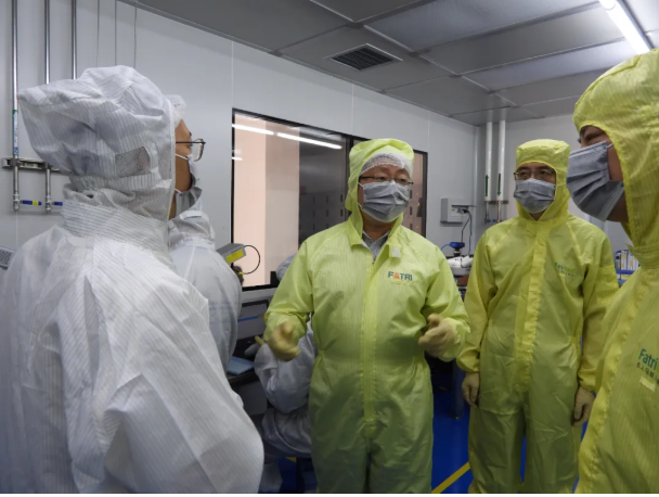▲聂泳忠博士带领考察团前往芯片&传感器车间