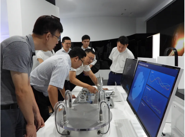 在西人马产业园,考察团参观了西人马公司文化展厅,了解到了西人马公司的整体发展、所获荣誉以及完全自主研发的机械故障诊断系统、周界安防系统、车路协同系统、电梯故障诊断系统等各领域的先进解决方案。