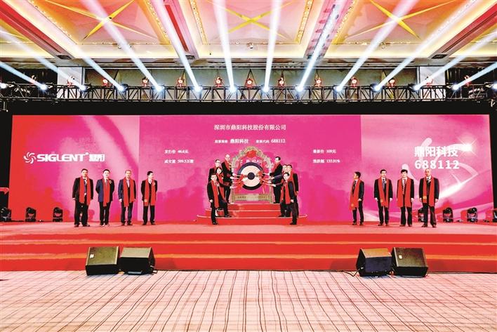 12月1日,上交所在科创板登陆大厅为宝安企业深圳市鼎阳科技股份有限公司(以下简称鼎阳科技,股票代码688112)举行“云上市”仪式;与此同时,鼎阳科技也在宝安区前海华侨城JW万豪酒店“鸣锣”,宣告企业正式登陆上交所科创板,成为A股首家通用电子测试测量仪器领域的上市公司。