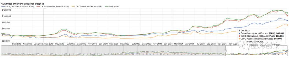 对了, 连续几个月暴涨之后,新加坡拥车证的价格本周已经开始回跌了: