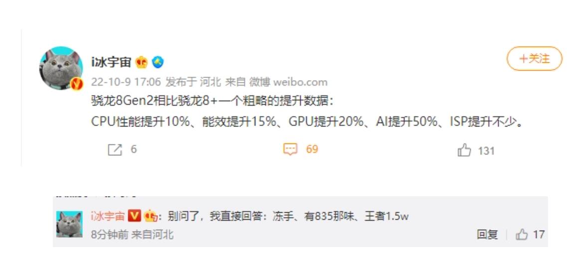 关于高通骁龙 8 Gen2 的情报,数码博主 @i 冰宇宙 透露,相比骁龙 8 Plus Gen1,骁龙 8 Gen2 的提升幅度大约在 10% 以上:其中 CPU 性能提升 10%、CPU 能效提升 15%、GPU 提升 20%、NPU AI 性能提升 50%,ISP 也有很大提升。