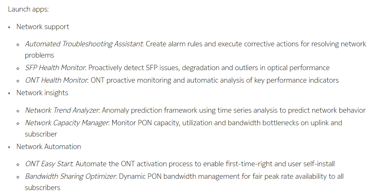 该在线市场将使用户能够从具备现成应用程序的数字店面中选择自动化工具。诺基亚将根据三大支柱对这些应用程序进行策划。运营商可以使用Network Support应用程序通过主动监控、性能分析和事件管理来维护、故障排除和保护固定网络。Network Insights应用程序将通过帮助运营商更好地优化、计划和预防的可行见解来提高质量和服务保证。Network Automation应用程序将有助于自动化和优化网络,提供服务和用户运营,以提高运营效率和改善客户体验。