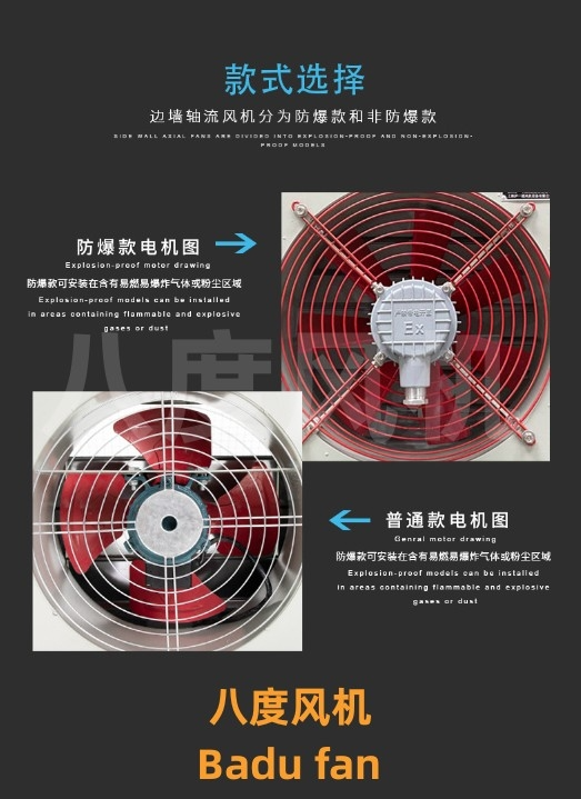 边墙式风机采用先进的前掠型叶片、低噪音的外转子或内转子风机专用电机直联传动,方形外壳设计可以方便地安装在混凝土墙、砖墙或轻钢压型墙板上,方形防雨罩结构牢固,外形美观。具有噪声低、风量大、运行可靠、性能参数范围广、安装简便等特点,广泛应用于厂矿企业车间和民用、商用建筑工程的边墙壁式通风换气。根据输送介质的要求,可制成防腐、防爆型。