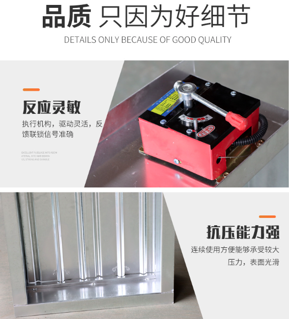 当风管内气流温度达到70℃,易熔片熔断,阀门在扭簧力作用下自动关闭。 阀门关闭时,输出关闭信号。手动关闭,手动复位开启。