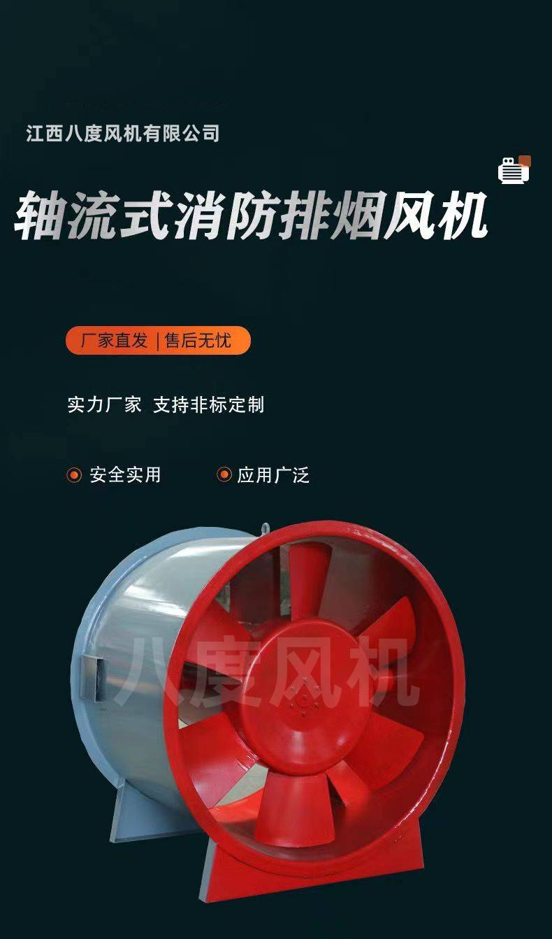 轴流风机是一种常见的通风换气产品,也是轴流风机大类别里面的一个系列轴流风机,T35主要是为一般工厂、仓库、办公室、住宅等场合的通风换气或加强暖气散热之用,如果将机壳去掉,也可作自由风扇,也可在较长的排气管道内间隔串联安装,以提高管道中的风压。T35型轴流风机是在国外同类产品的基础上,通过模型试验研究,确定了风机叶型,采用了圆筒型轮毂结构,同时对电机进行了改型设计,减少了流动损失,因而使风机效率出口按圆面积提高到百分之七十七,按出口环面积计算提高到百分之八十九点五,噪声比A声降低了3.6dB,又增强了叶根处的强度,避免了叶片断裂现象。消防高温排烟轴流风机是经优化设计研制开发的新产品。 它具有效率高、曲线平坦的特点,有利于节能。该机采用电动直联传动,可以根据民用建筑的不同要求,采用单速或多速驱动形式,以达到通气排风和消防使用时高温排烟的目的。广泛适用于民用建筑,烘箱,地下车库,隧道等场合