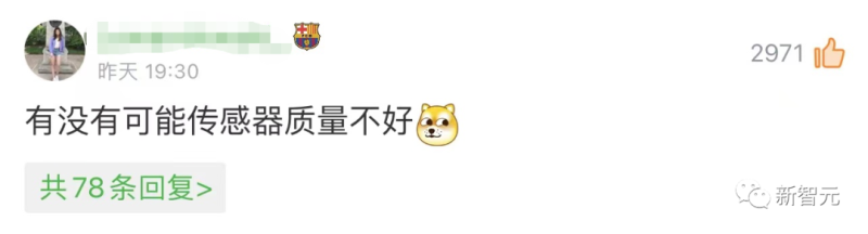 网友调侃称,「肯定是传感器出了问题!」,还附上了一个友善的狗头。