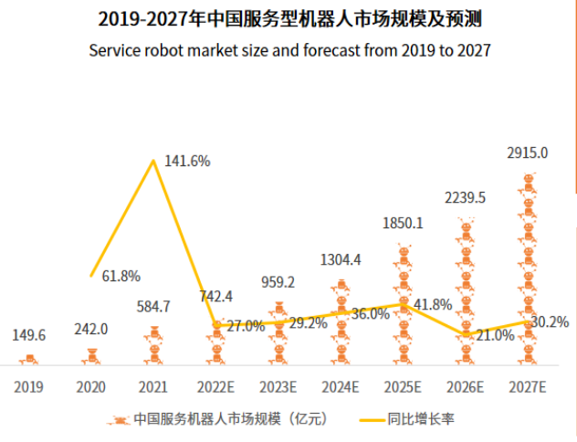 场景化需求的牵引,使服务型机器人市场规模不断扩大。艾媒咨询报告数据显示,2023年中国服务型机器人市场规模将达959.2亿元,市场份额将有望超越工业机器人;2025年市场规模将达到1850.1亿元,中国服务机器人赛道发展提速,成长空间巨大。