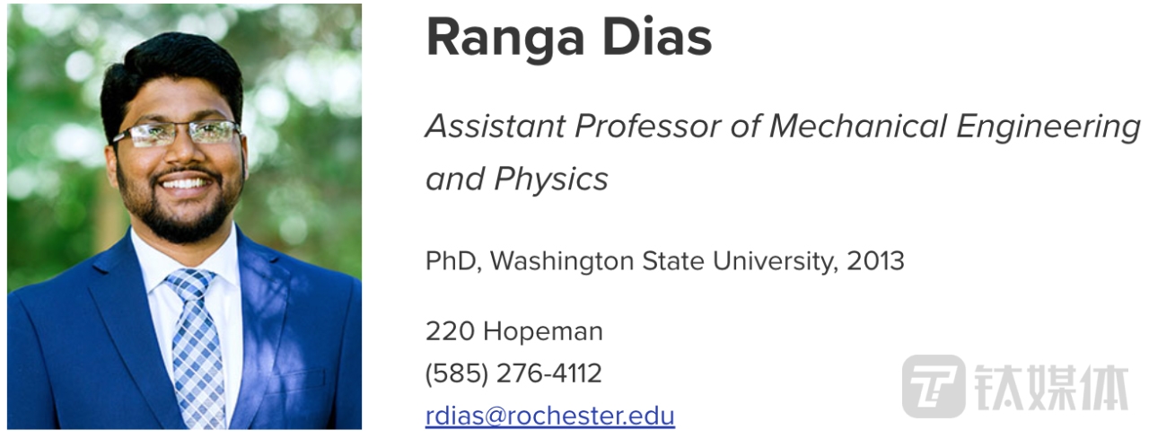 美国罗切斯特大学助理教授、哈佛大学物理系研究员、凝聚态物理学家Ranga Dias,一位来自于斯里兰卡的物理学家