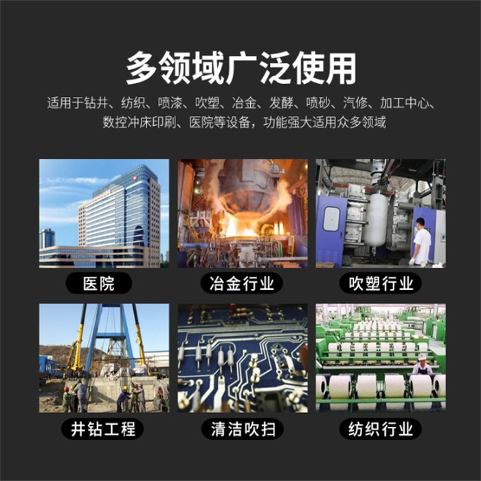 5、变频系统大多数工况是低于额定转速下工作的,主机机械震动小、噪音低、磨损下降,延长维护及使用寿命,适用于更多场合使用,如果风机也一起采用变频驱动,更显降低空压机运行时的噪音。