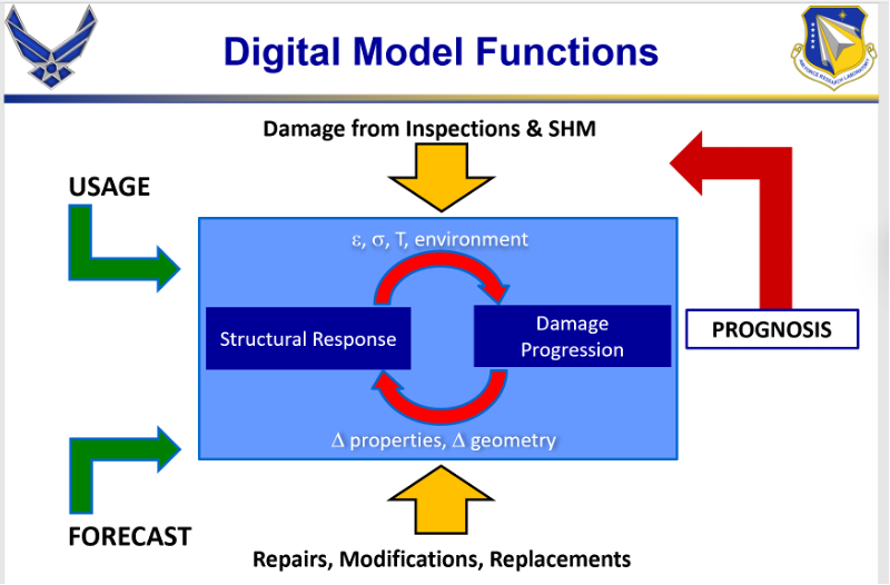 ◉AFRL提出数字孪生,是用于解决大量的老旧飞机的健康诊断与预测问题。目的时降低这些飞机运维成本,提高飞机的利用率。