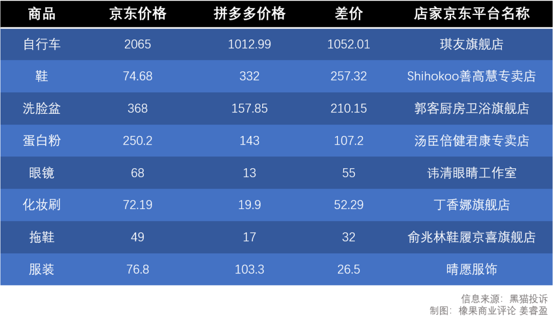 多名维权消费者告诉《橡果商业评论》,他们在京东第三方店铺下单自行车、鞋、洗脸盆等商品,被商家赚去20至1000元不等的差价。