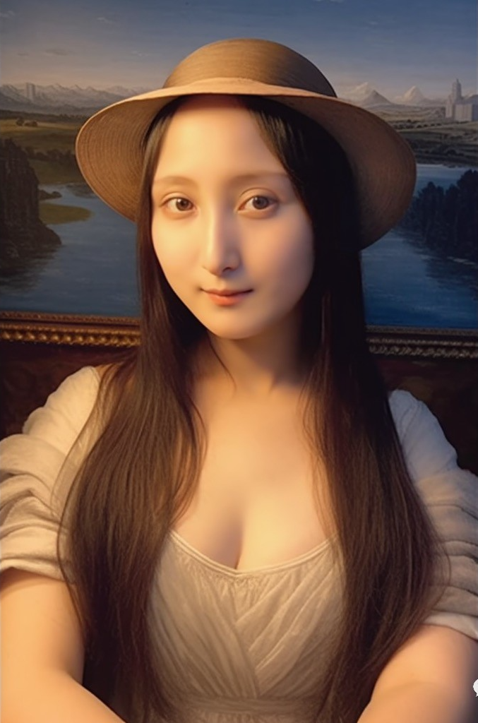 甚至,跟蒙娜丽莎合体,这位来自文艺复兴时期的欧洲贵妇也戴上了中国特色的草帽。