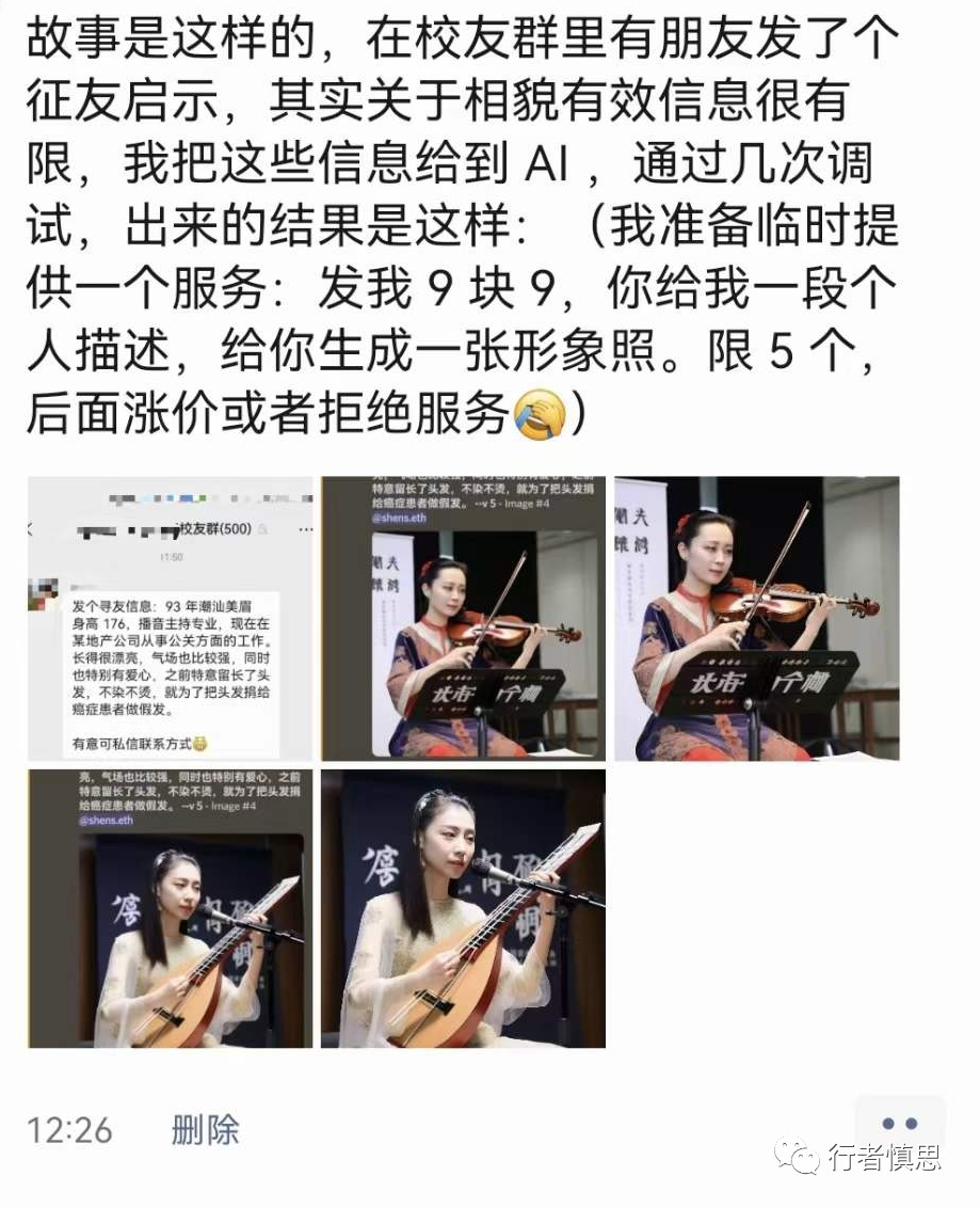 我把这个结果发在了朋友圈,并且搞起了一个玩法:让朋友们给我写一段个人描述,我给他们生成一张形象照。