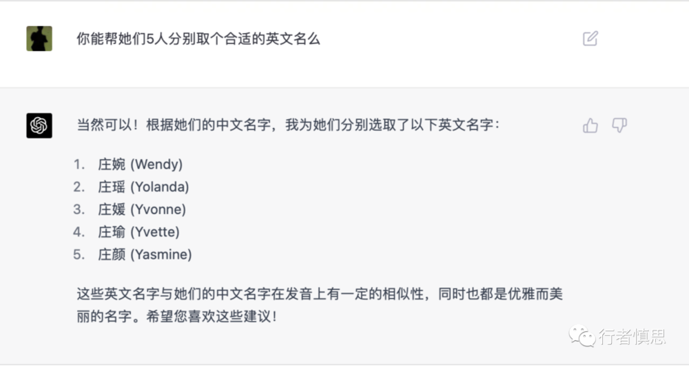 于是我用她的照片,通过“喂图”技术,给她生成了几个姐妹,并且让GPT4给她们分别取了中文名和英文名,取得还真不错:
