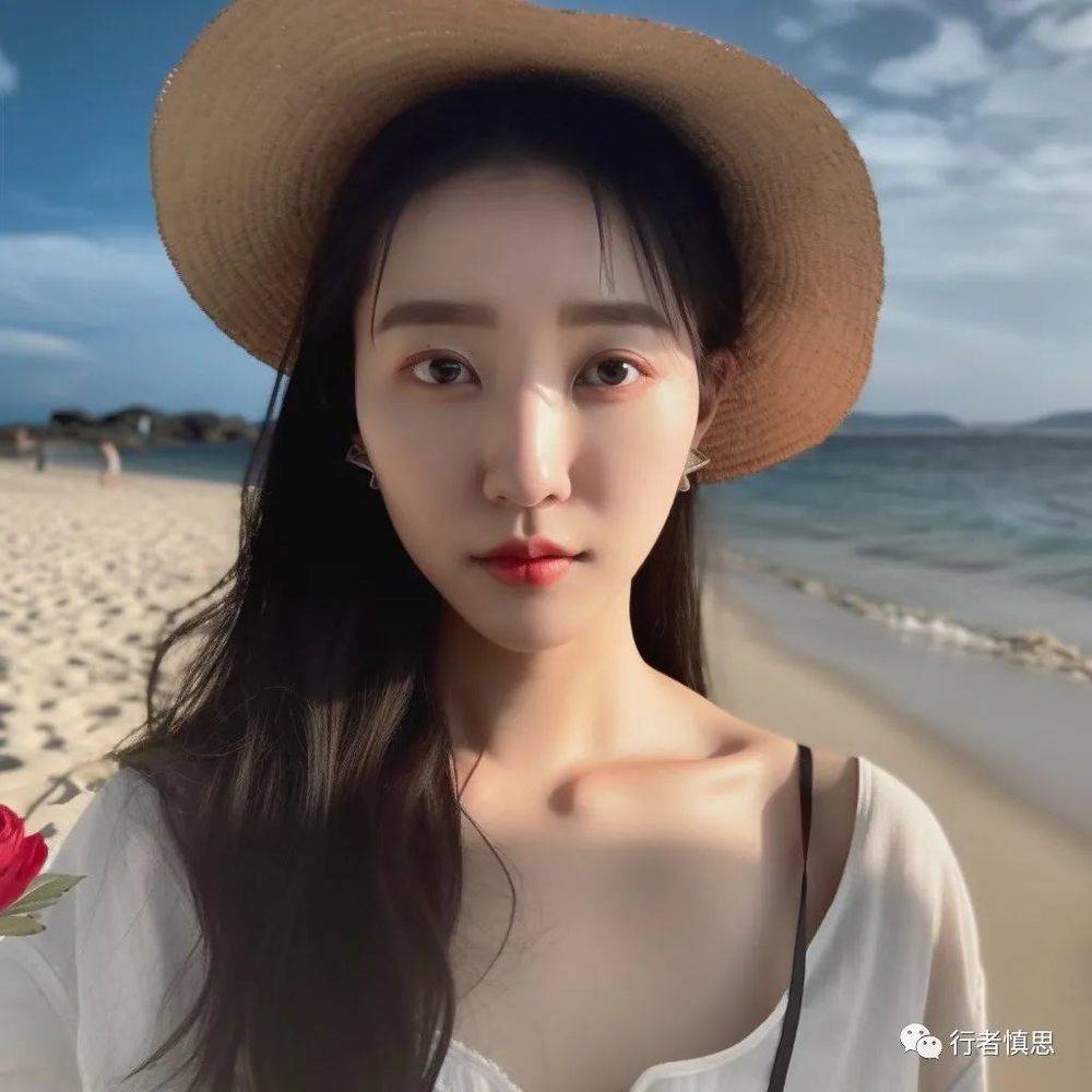 这征友启事中虽说强调女主“长得很漂亮”,但是到底有多漂亮呢?我也很好奇。于是乎,我八卦心起,把这段话“喂”给了AI画图神器Midjourney。它给出了4个候选图: